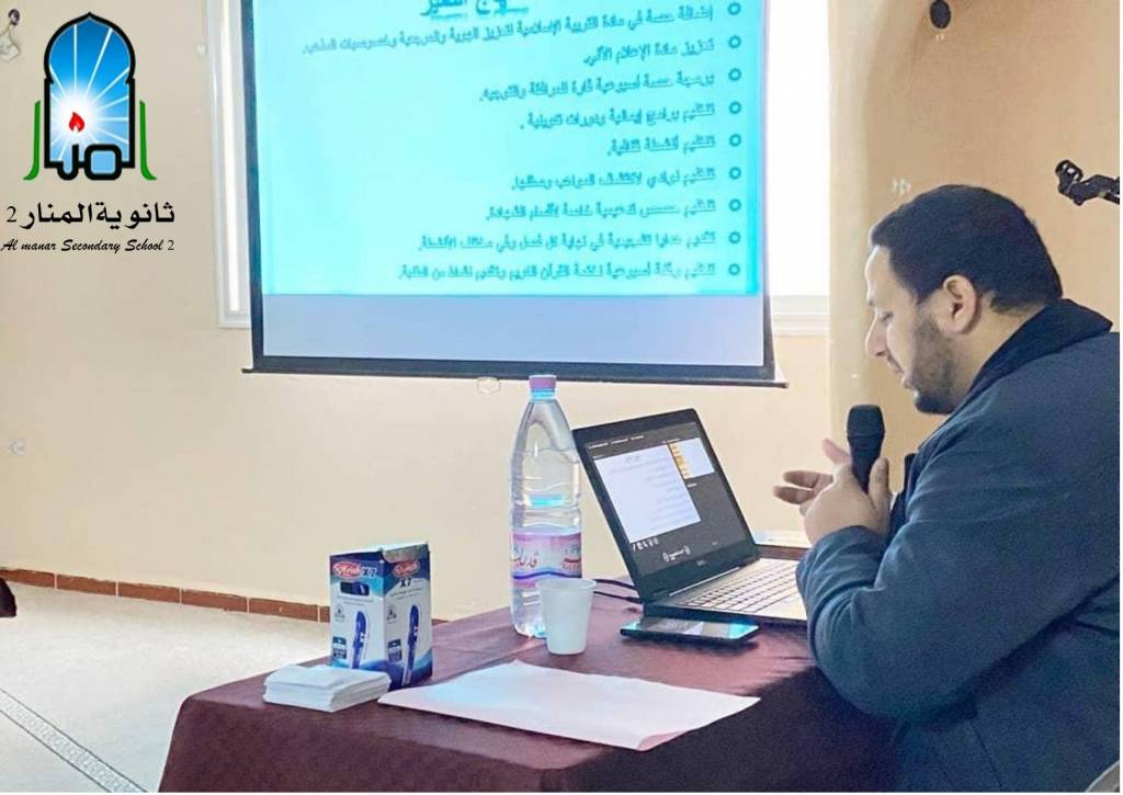 نظمت ثانوية المنار لقاء لفائدة الأمهات وذلك يوم الأربعاء 09 مارس 2022م، حيث شهد اللّقاء عرضا حول أنشطة الثانوية ومستجداتها، وأهمّ تحدّياتها من تقديم الأستاذ الفاضل: دودو داواد، كما شهدت مداخلة من أستاذة اللغة الفرنسية (سهام ه)،حيث تمت مناقشة وانشغالات الأمّهات، وقدمت نصائح لفائدتهن بخصوص مرافقة ومتابعة الأبناء في مجال التربية والتعليم.