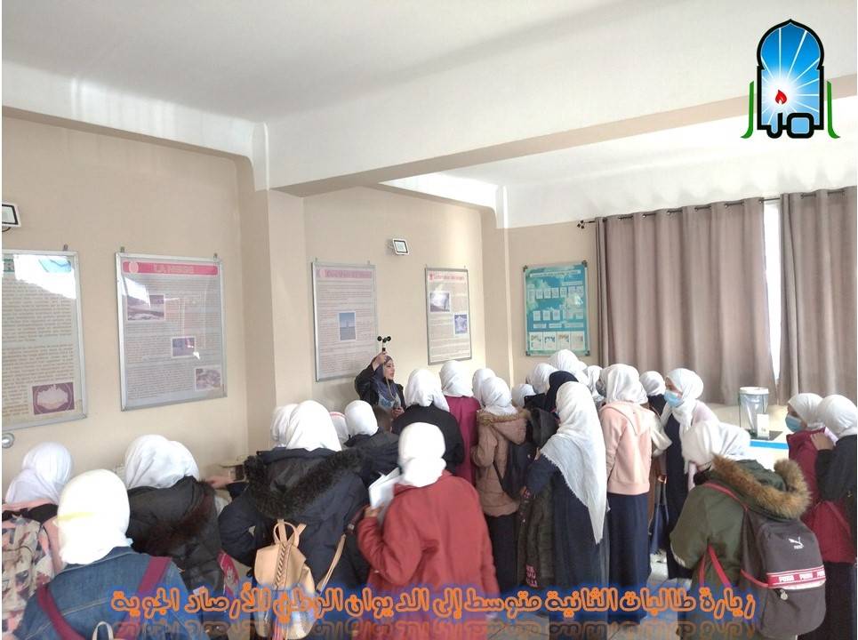 نظمت إدارة متوسطة المنار خرجة هادفة لفائدة طالبات السنة الثانية متوسط إلى الديوان الوطني للأرصاد الجوية – محطة الدار البيضاء – وهذا بعد نهاية المحور في مادة الجغرافيا، وقد اطّلعن على مختلف الوسائل التي تُستعمل لرصد الأجواء ومختلف العمليات التي تتمّ وكيفيتها.