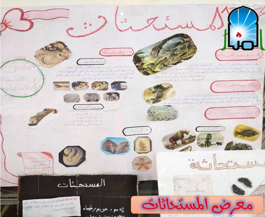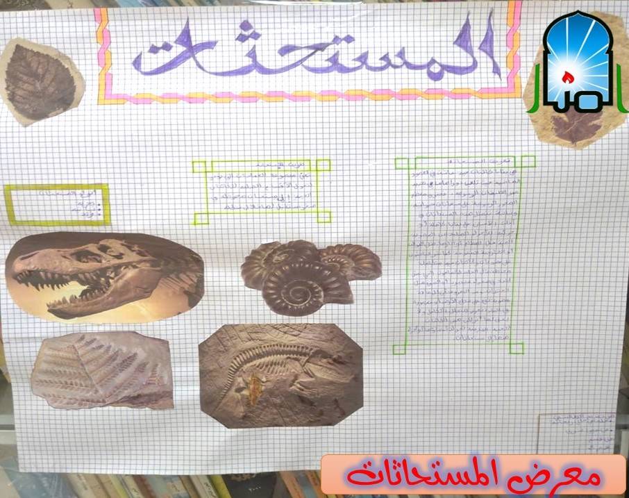 معرض المستحاثات السبت 28 مايو 2022 قامت طالبات الثانية متوسط في نهاية ميدان "الانسان والمحيط" في مادة العلوم الطبيعية بعرض مشاريعهن المتمثلة في مختلف أنواع المستحاثات وهذا بعد التعرف على شروط الاستحاثة وكيفية ربط تغيرات توزع كائنات الأوساط القديمة بتغيرات بيئية عبر الأزمنة الجيولوجية