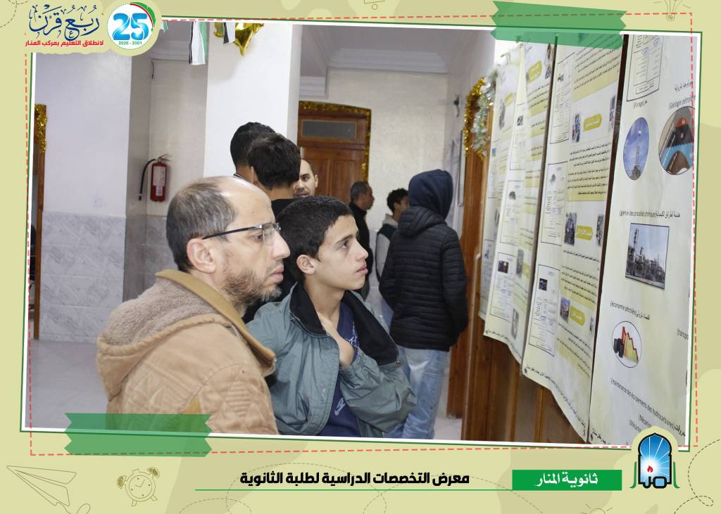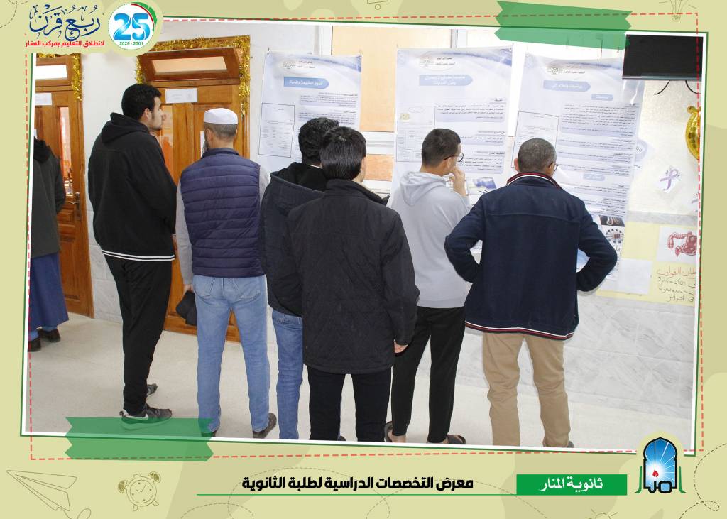 في إطار حرص إدارة الثانوية على مرافقة أبنائنا التلاميذ في توجيههم الدراسي ومساعدتهم على حسن اختيار تخصصاتهم المستقبلية، نُظِّم معرض التخصصات لطلبة الثانوية، بحضور الأولياء مع أبنائهم الطلبة، بهدف تعريف الطلبة بمختلف المسارات الدراسية وآفاقها الجامعية والمهنية.